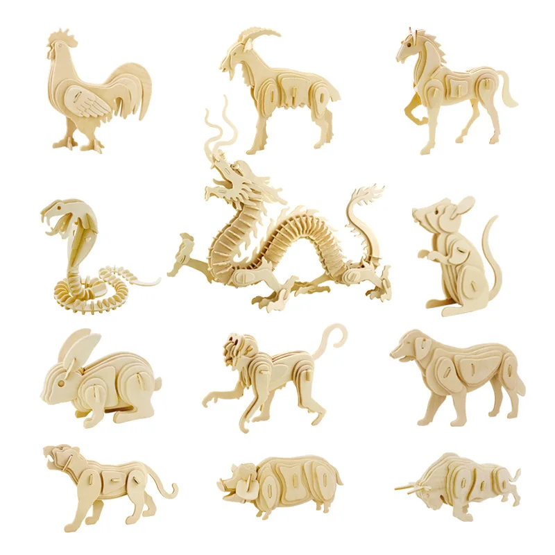 12 Signes Du Zodiaque Chinois 3d Tridimensionnel En Bois Animal Puzzle Jouets Pour Enfants Bricolage Fait A La Main En Bois Puzzle 3d Puzzles Aliexpress