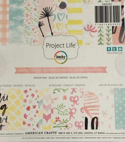 Project Life Single Sided Paper Pad 6 X6 36 Pkg Inspire Scrapbooking And Papercrafts Supplies White Rose Crafts Llc