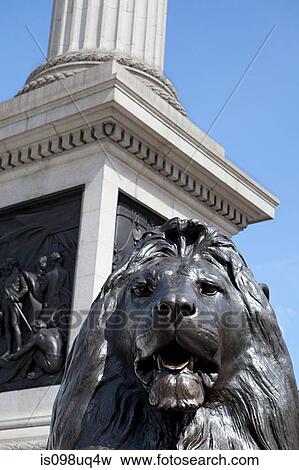 Lion Statue Et Colonne Nelson Londres Banques De Photographies Is098uq5q Fotosearch