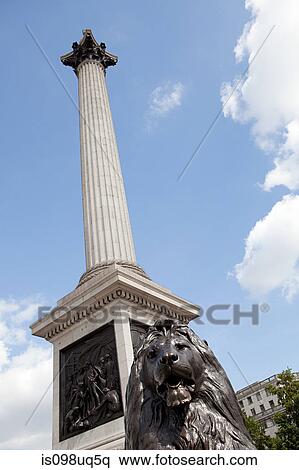 Lion Statue Et Colonne Nelson Londres Banque De Photo Is098uq4w Fotosearch