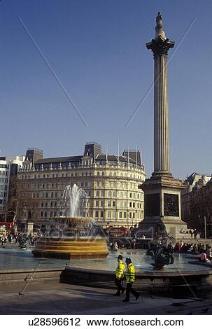 Nelson S Colonne Nelson Seigneur Amiral Fontaines Trafalgar Carre Londres Angleterre Royaume Uni Europe Banque D Image Iblsbe Fotosearch