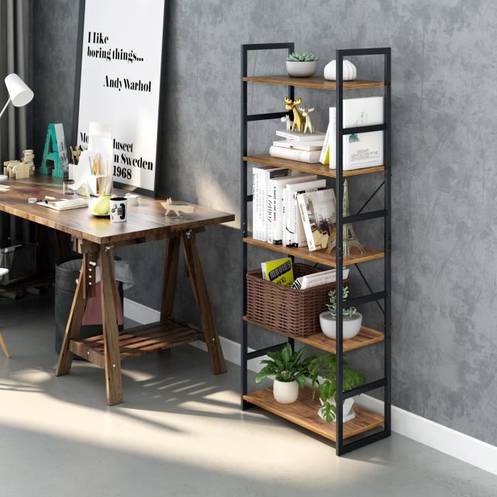Langria Meuble Etagere En Bois Antique Et En Metal Bibliotheque A 5 Niveaux 60x30x158cm Pour Salon Chambre Cuisine Achat Vente Meuble Etagere Langria Meuble Etagere En B Soldes Sur Cdiscount Des Le