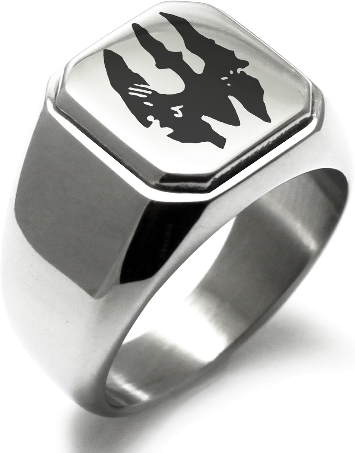 Stainless Steel Star Wars Mandalorian Death Watch Symbol Engraved Square Flat Top Biker Style Polished Ring Size 8 Amazon Ca Jewelry