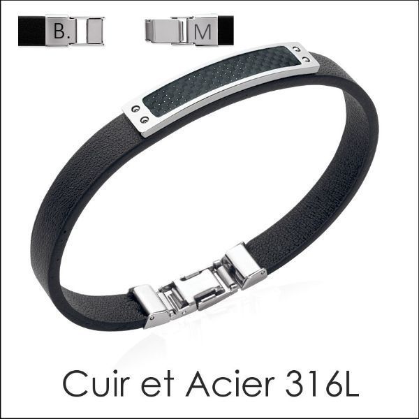 Bracelet Cuir Acier Et Carbone Poque