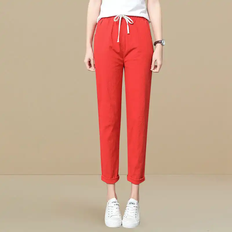 Couleur Unie Sarouel Femmes Coton Lin Ete Dames Taille Haute Blanc Pantalon Pour Femmes Lin Pantalon Femme Sarouel Ample Aliexpress