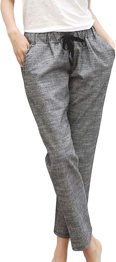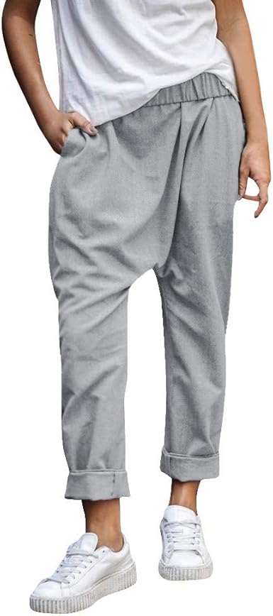 Tomwell Femme Ete Decontractee Coton Lin Ample Pantalon Leger Cordon Elastique Solide Couleur Pantalon Sport Pants 7 8 Longueur Pantalons Amazon Fr Vetements Et Accessoires