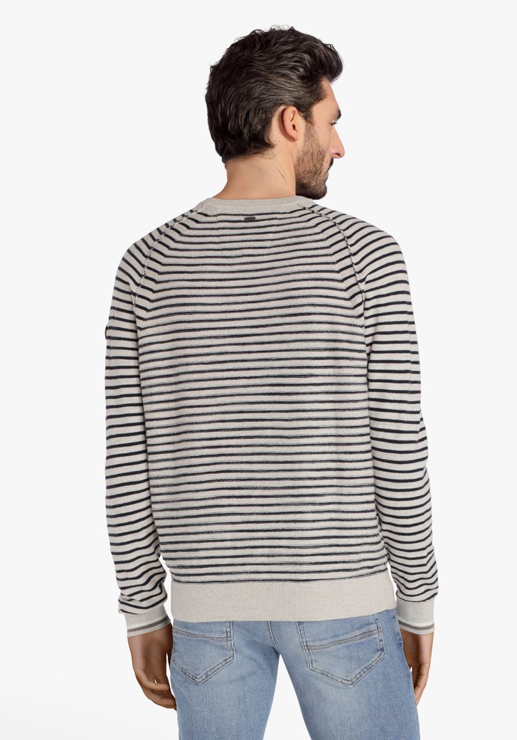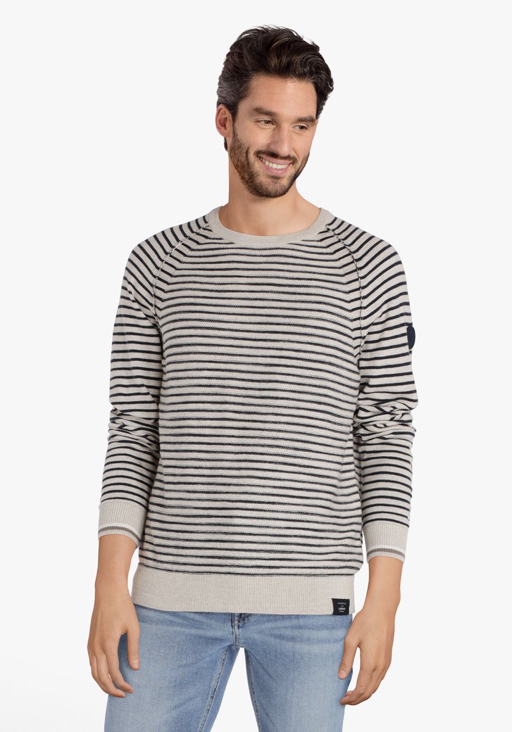 Pull Raye Beige Et Bleu Marine A Col Rond E5 Mode