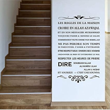 Haipeiy Sticker Mural Version Francaise De Sticker Mural Islamique Islamique Vinyl Decal Sticker Wall Art Coran Citation Allah Arabe Musulman Decoration 90x70cm Amazon Fr Cuisine Maison