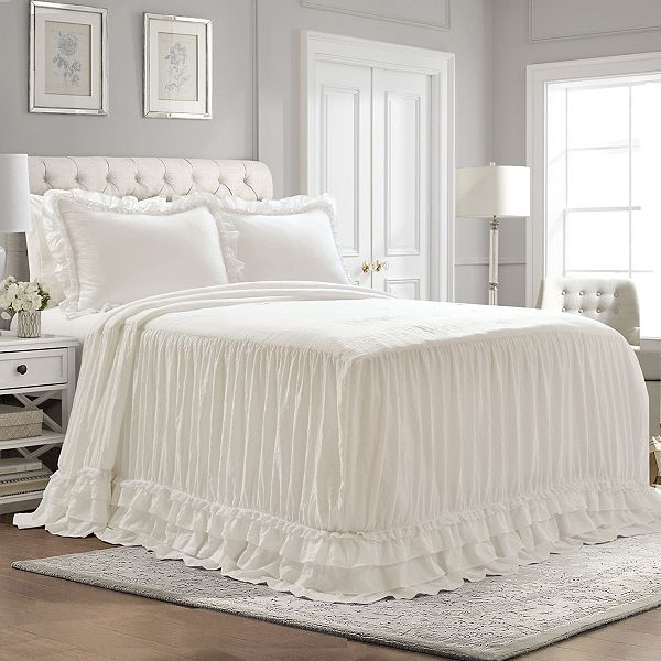 Amazon Com Lush Decor Ruffle Skirt Bedspread White Shabby Chic Farmhouse Style Lightweight 3 Piece Set King Home Kitchen