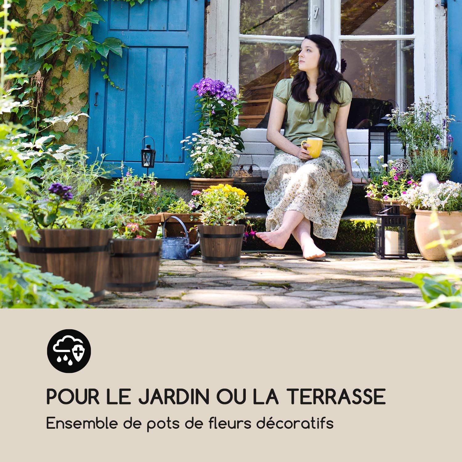 Tartiery Pot De Plantes A Fleurs Planteur De Futs Demi Baril Rustique Gris Fonce Interieur Exterieur Ideal Pour Les Terrasses Jardins Dhiver La Maison Ajoutera Charme Et Caractere A Votre Jardin Pots De Fleurs Jardin