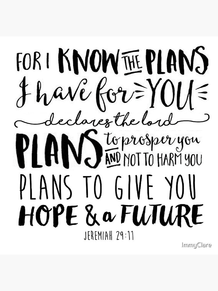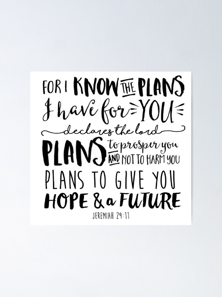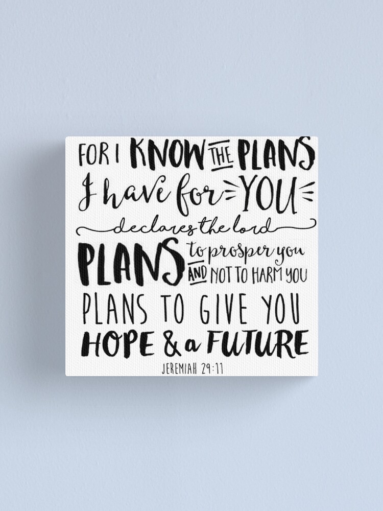 For I know the plans I have for you bible quote For i know the plans i have for you, declares the lord plans to prosper you and not to harm you, plans to give you hope and a future Bible quote, Jeremiah 2911 Handlettering, home decor sign prophet jeremiah illustrations stock illustrations. The answer reveals your hermeneutic What’s Your Lens?. Oct 10, 18 Buy 'Calligraphy Bible Quote Jeremiah 2911' by ImmyClare as a Floor Pillow.