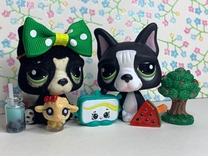 Amazon Com Boston Terrier 63 Black White Accents Littlest Pet Shop Retired Collector Toy Lps Collectible Replacement Single Figure Loose Oop Out Of Package Print Toys Games