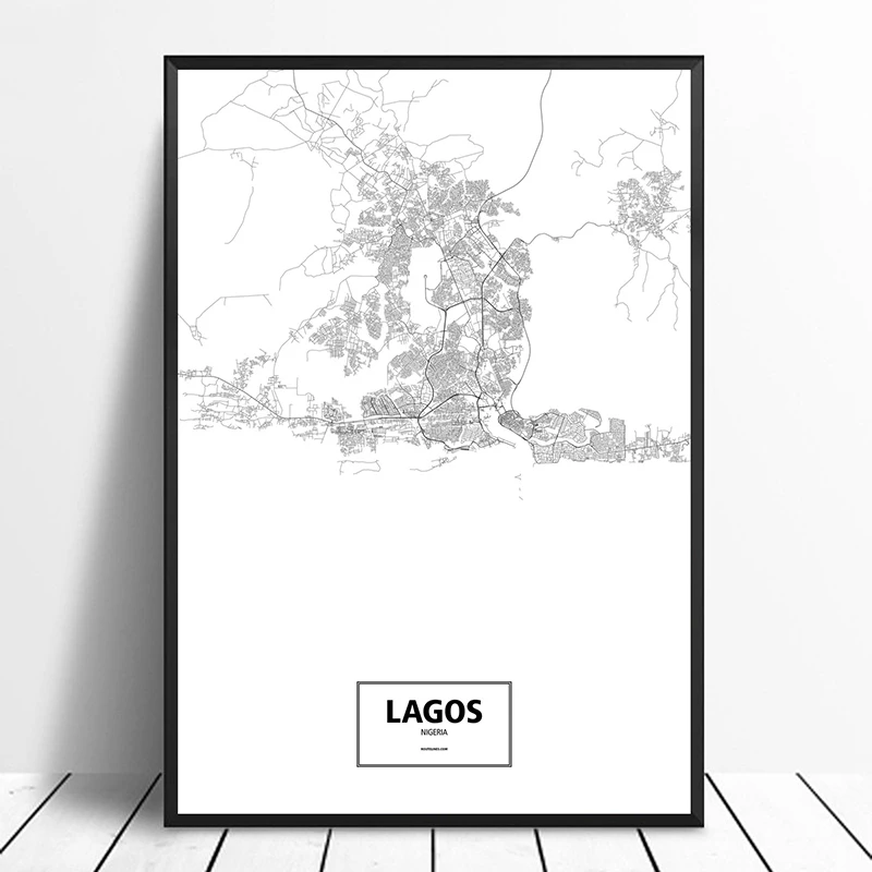 Lagos Nigeria Noir Blanc Personnalise Monde Ville Carte Affiche Toile Impression Style Nordique Mur Art Decor A La Maison Aliexpress