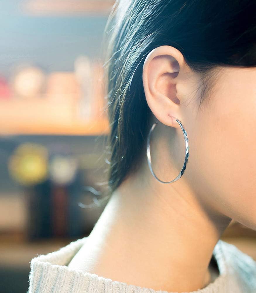 Fu You Boucles Doreilles En Argent 925 Grande Rondes Anneaux Boucles Doreilles Creoles Diametre 50mm Boucle D Oreille Pour Femme Fille Fille Boucles D Oreilles