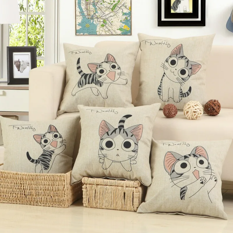 En Gros 5 Sortes De Beau Chat Decoratif Housses De Coussin Pour Canape Bureau De Voiture Literie Housse De Coussin 45x45 Cm Sans Noyau D Oreiller Aliexpress