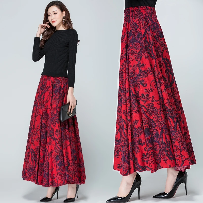 Jupe D Hiver Vintage Longue Impression Jupe En Lin A Vendre Aliexpress