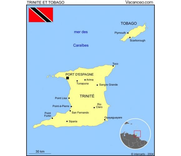 Carte TrinitéetTobago & Plan Villes, régions et provinces de TrinitéetTobago par Les Vols d'Alexi avril 10, , 1117 am CARTE DE TRINITÉETTOBAGO VILLES DE TRINITÉETTOBAGO. La carte de TrinitéetTobago Google Maps Voir le plan du pays TrinitéetTobago détaillée. Cette carte simplifiée de TrinitéetTobago inclut la capitale Portd'Espagne et les grandes villes, les fleuves et rivières, les éventuels lacs, mers intérieures et iles La carte présente le cadrage géographique permettant de situer TrinitéetTobago par rapport à ses espaces voisins, notamment les frontières avec les pays.