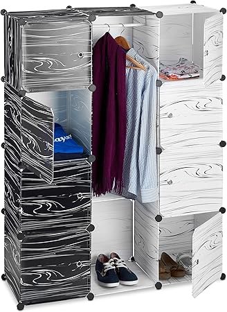 Qui dit arrivée de bébé, dit nouvelle organisation de vie à trouver et nouveau mobilier à la fois joli et pratique à acheter L’armoire bébé fait par exemple partie des pièces maîtresses de la chambre d’un enfantCe meuble de rangement est spécialement conçu pour stocker ses vêtements, draps de rechange ou encore accessoires de toilette. Une armoire à la fois design et pensée pour tout ranger sans souci L'armoire penderie est le choix le plus pratique, elle assure suffisamment de rangements pour les accessoires, elle est équipée d'étagères de stockage pour les vêtements pliés et d'une barre horizontale pour y suspendre les habits délicats de votre enfant afin d’éviter qu’ils ne se froissent. Edaygo Système D’Armoire Penderie Unité Murale Étagère De Rangement En Plastique Avec Portes Armoire Penderie Chambre D'enfant, Cubes, Taille Totale 180 x 145 x 47 cm, à Motifs Noirs et Blancs 3,8 sur 5 étoiles 5.