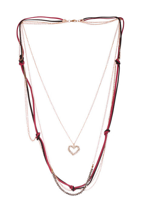 Collier Fuchsia Et Noir Pour Femme Avec Pendentif En Coeur Bijoux Femme Tendance