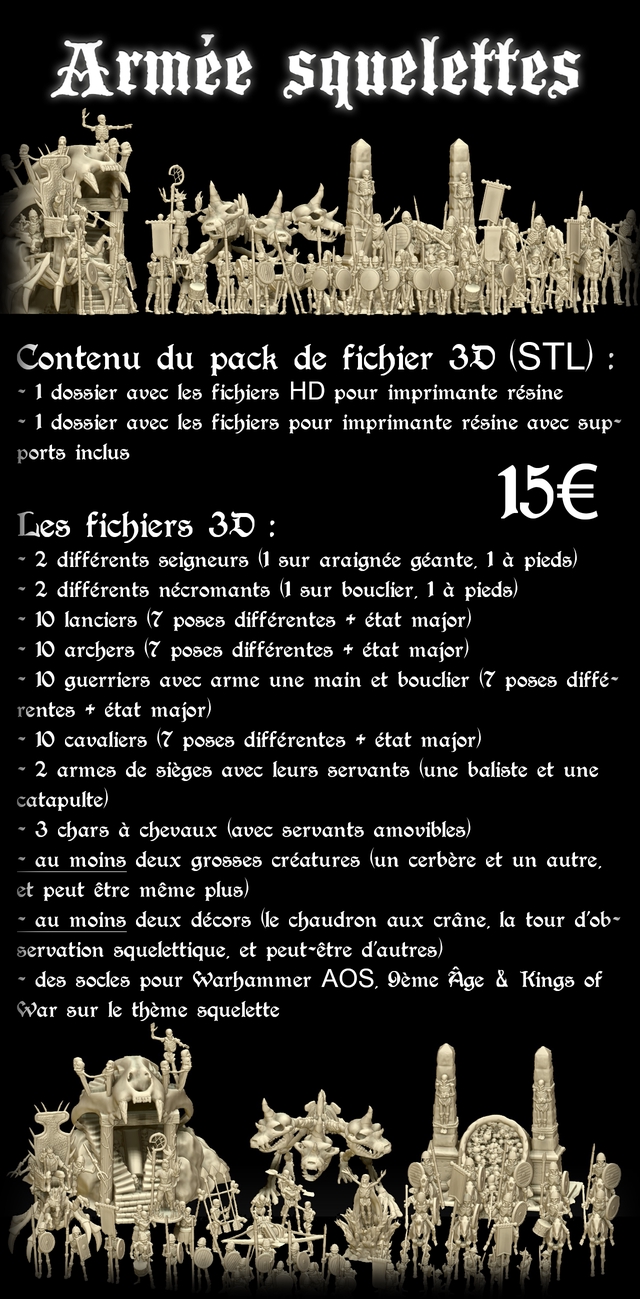 Nous modélisons des miniatures pour les jeux de figurines Nous proposons des miniatures en résine et des fichiers stl pour l'impression 3D. Une fois que vous avez modélisé l’objet que vous souhaitez imprimer, vous l’obtenez sous la forme d’un fichier STL Le slicer 3D permet de convertir le modèle en une série de couches fines et génère un fichier Gcode, contenant toutes les instructions pour l’imprimante 3D utilisée. Imprimantes 3D pour les professionnels que ce soit pour vos maquettes ou prototypes, l'impression 3D est fait pour vous !.