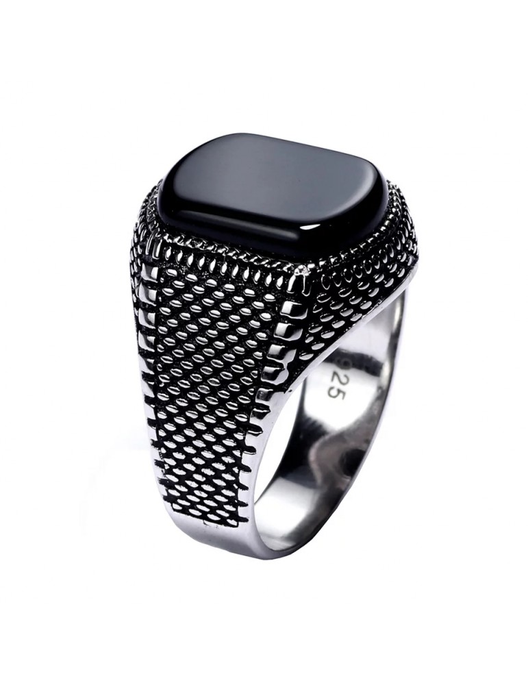 Bague Argent 925 Onyx Imitation Homme Bague Maty