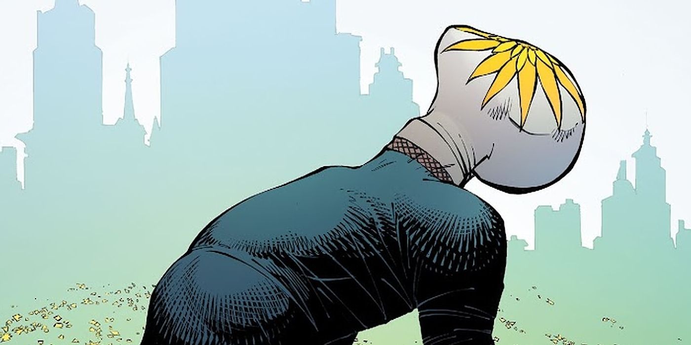 Batman 43 features the debut of a brand new villain named Mr Bloom and many are calling him the next Joker He’s extremely thin, tall in an unsettling way, and his face is concealed with a white covering with an image of a blooming yellow flower. Mr Bloom was active during zero year and went behind the scenes selling his seeds which grants random powers to anyone who ingests it or surgically places it under their skin After a standoff with Jim Gordon Batman, Mr Bloom was cuffed and on his way to Arkham for processing but again, James Gordon Batman fell into the villain’s plans. A new Batman, for a new age And one that deserves his very own archnemesis That’s exactly what BatGordon will experience, when he tangles with Mr Bloom, a creepy first addition to Jim’s rogues gallery But how can a man with flower power on his face be frightening?.
