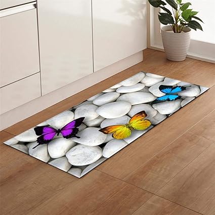 Wgoo Carpet Tapis De Cuisine Devant Evier Tapis Cuisine Antiderapant Absorbent Lavable En Machine Beau Tapis De Salle De Bains D Epaisseur D Impression De Papillon De Galet De 7mm 40x1cm Amazon Fr Cuisine Maison