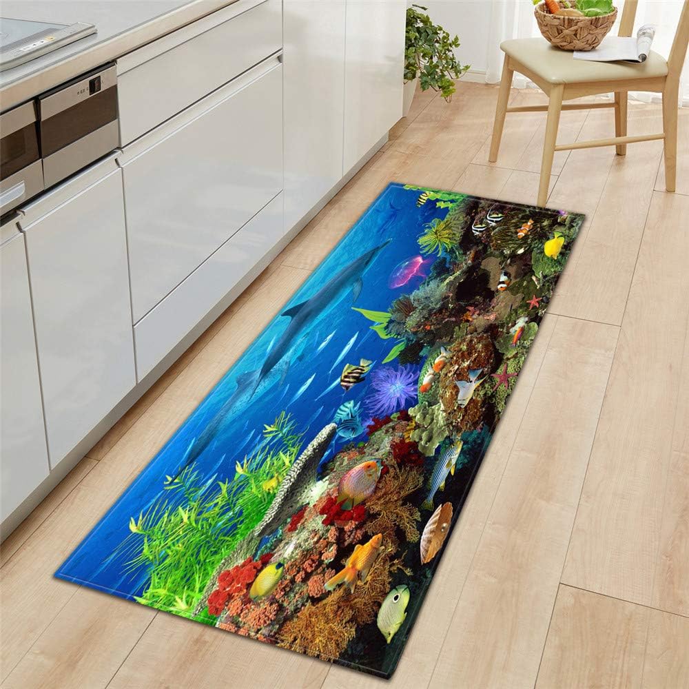 Wgoo Carpet Tapis De Cuisine Devant Evier Tapis Cuisine Antiderapant Absorbent Lavable En Machine Tapis De Salle De Bain Sous Marin Imprime Dauphin Corail Epaisseur 7mm 40x1cm Cuisine Maison Paillassons