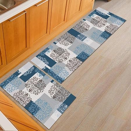 Wtxd Tapis Cuisine Devant Evier 2 Pieces Tapis De Cuisine Antiderapant Moquette Maison Moderne Couverture De Chambre D Enfants Bleu Amazon Fr Cuisine Maison
