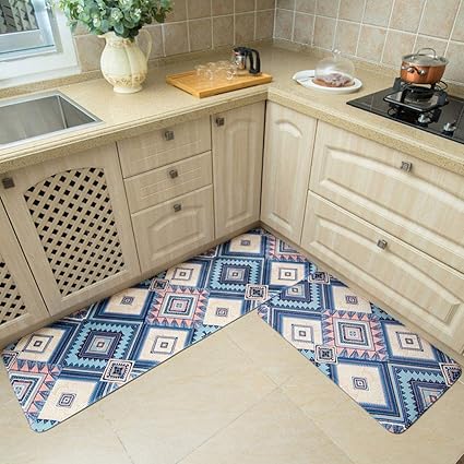 Wgoo Carpet Tapis De Cuisine Devant Evier Tapis Cuisine Antiderapant Absorbent Lavable En Machine Tapis De Salle De Bains D Epaisseur D Impression De Mosaique De Diamant De 2pcs 7mm 40x60 40x1cm Amazon Fr Cuisine Maison