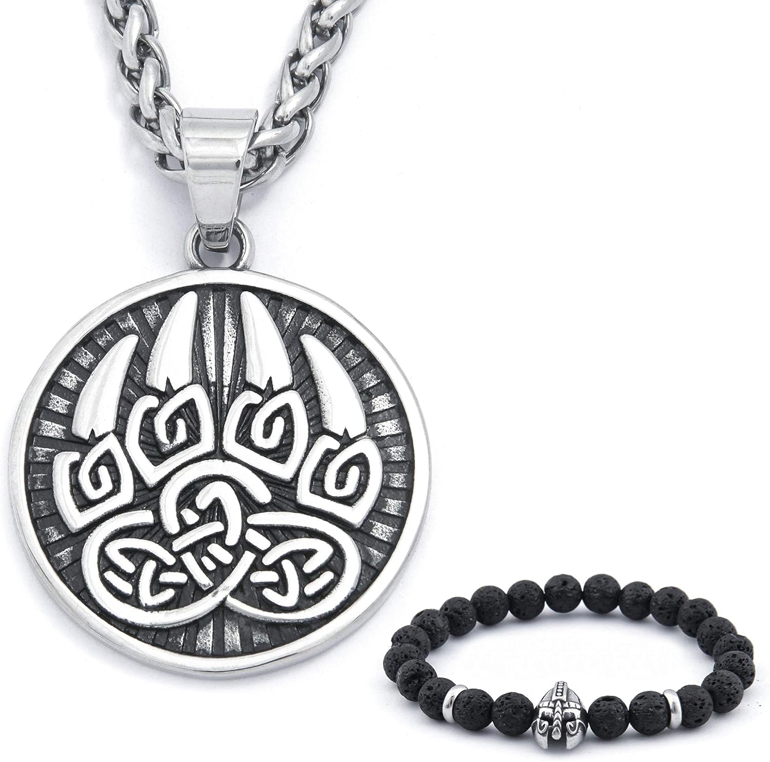 Bavipower Celtic Viking Knot Bear Paw Pendant Stainless Steel Keel Chain Necklace For Mens Women Warrior Spirit Amazon Com