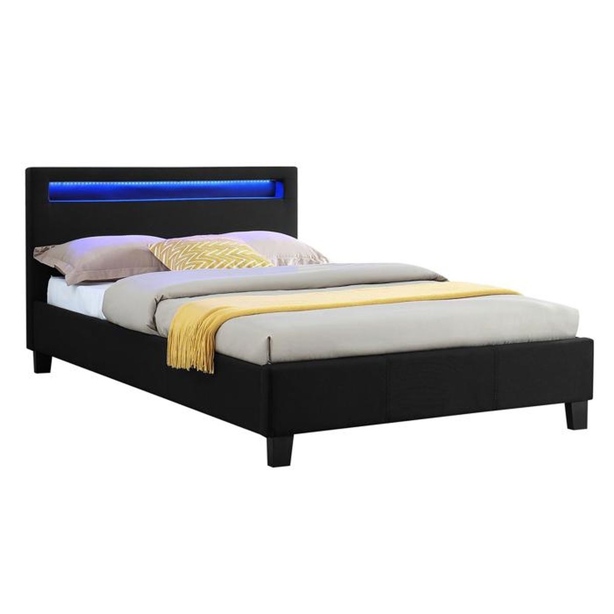 Idimex Lit Simple Pour Adulte Marisela Couchage 1 X 190 Cm Avec Sommier 1 Place Et Demi 1 Personne Revetement En Tissu Noir Tete De Lit Avec Led Integrees Lits Lits Et Cadres De Lit