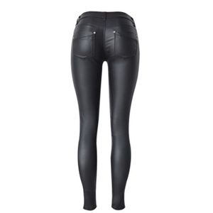Neuf Pour Femme Sexy Pantalon Cuir Look Slim Fit Etroit 3 Bouton Fermeture Jean Ebay