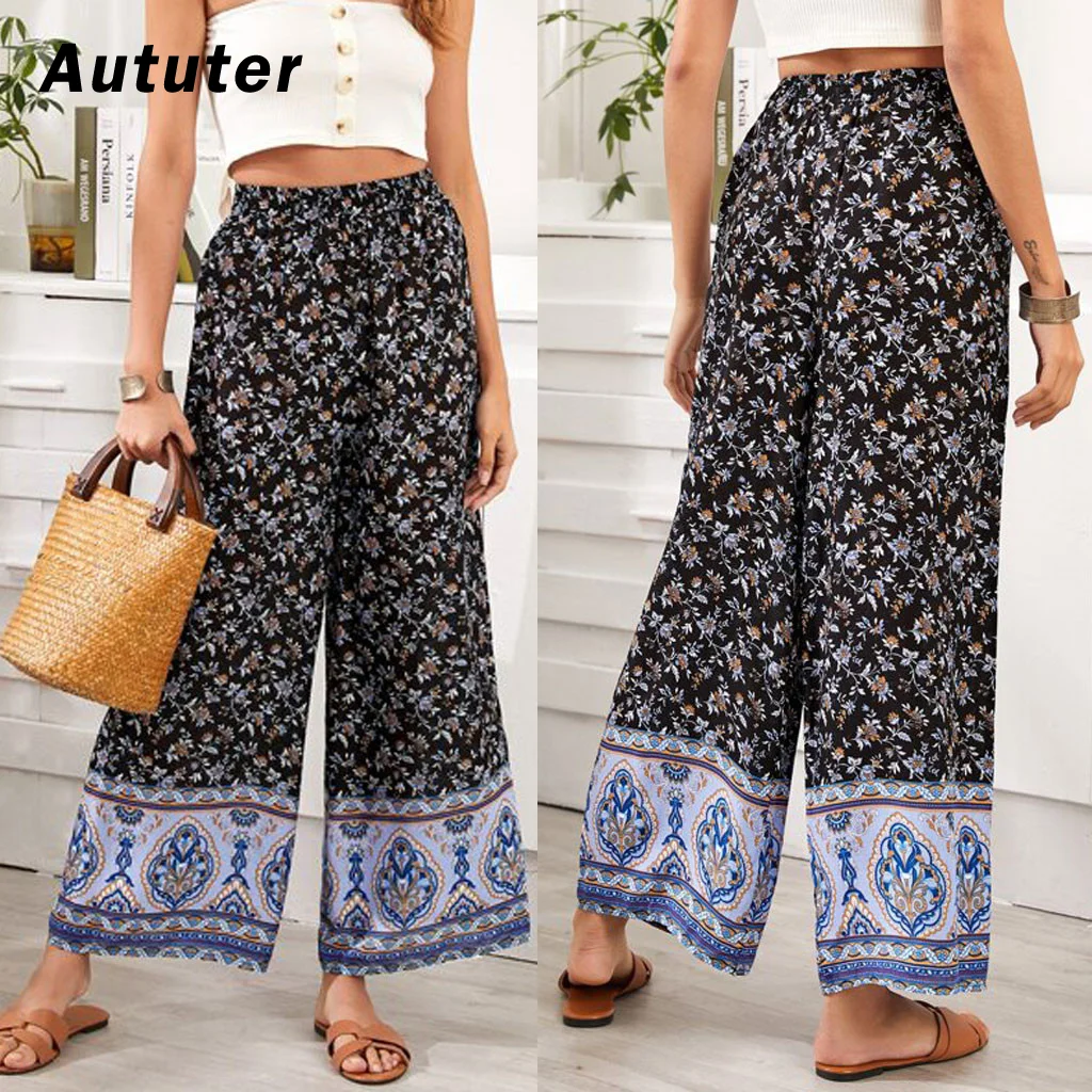 Femme Ete Plage Boheme Motif Fleur Pantalon Jambe Large Bouffant Long Novel Eur 7 Picclick Fr