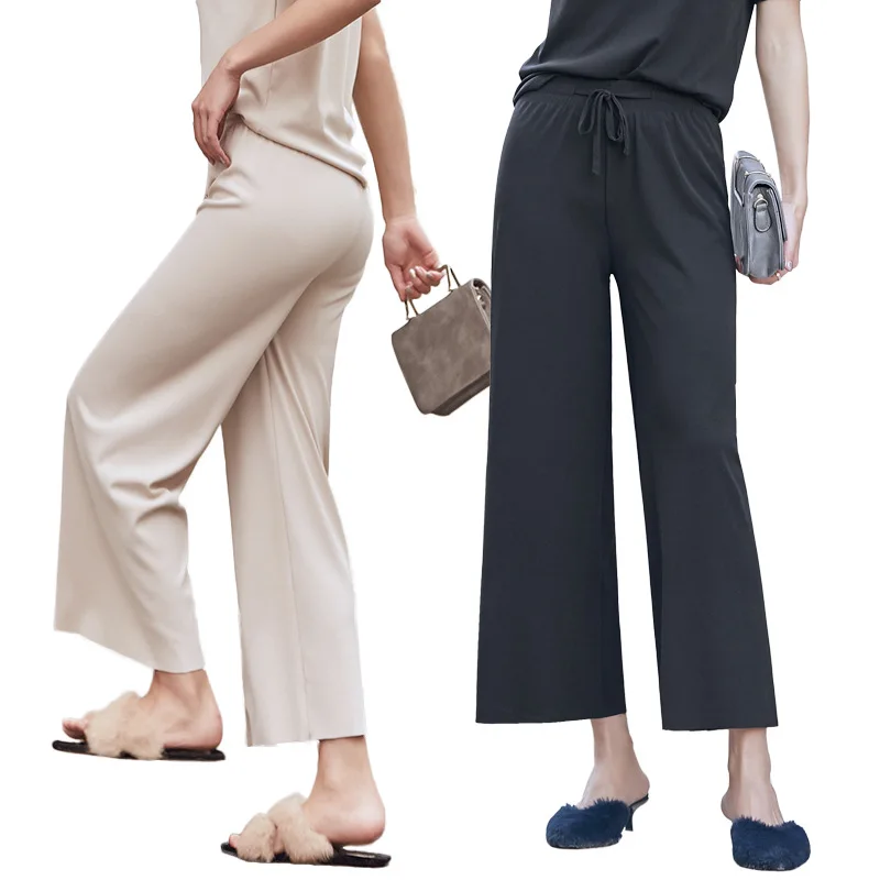 Glace Soie Pantalon Large Femme Ete Taille Haute Ample Mince Section Neuf Points Pantalon Vertical Sens Droit Decontracte Pantalon Femme Aliexpress