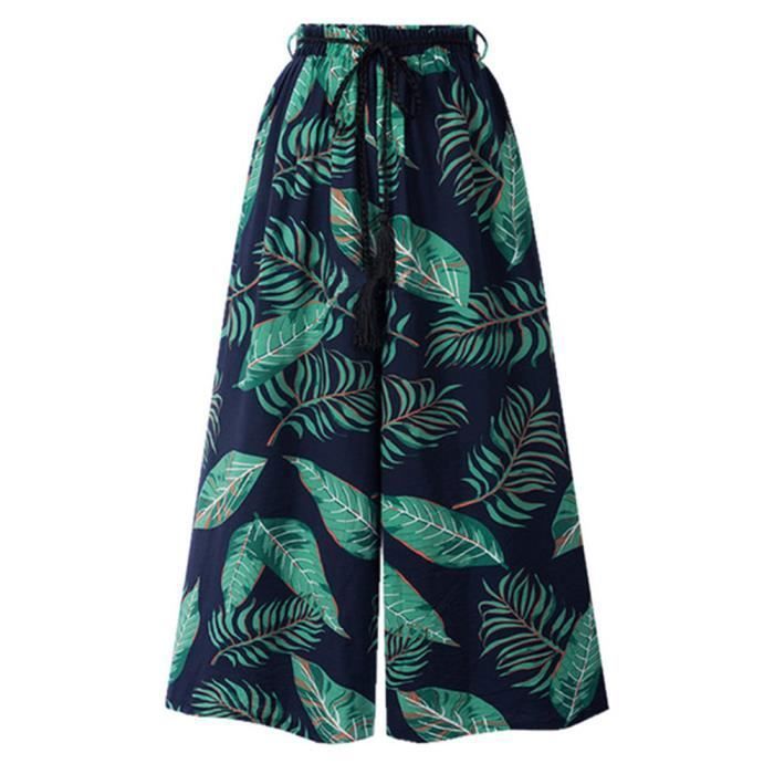 Femmes Ete Pantalon Large Taille Haute Impression Pantalon Decontracte De Plage Bleu Vert L Vert Achat Vente Pantalon Cdiscount