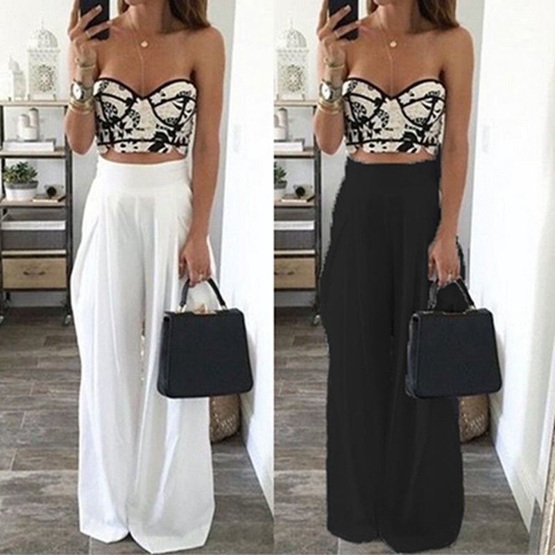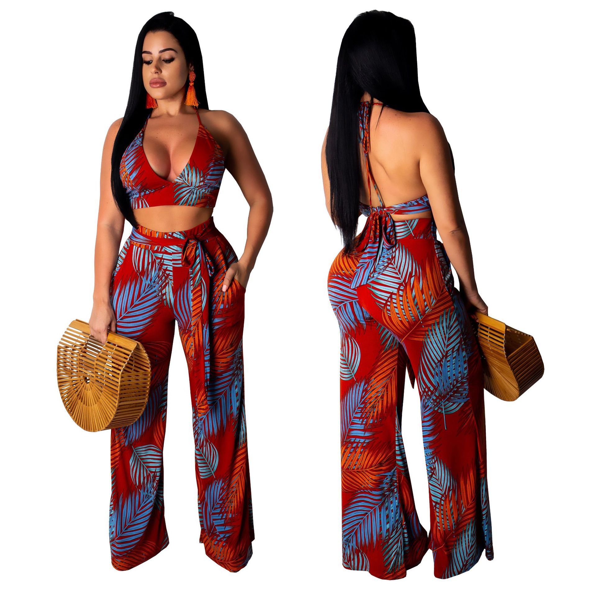 Acheter Ete Femmes Ensemble 2 Pieces Imprime Dos Nu Court Top Taille Haute Pantalon Large Evider Set Beach Sexy Style De 14 11 Du Cici Dhgate Com