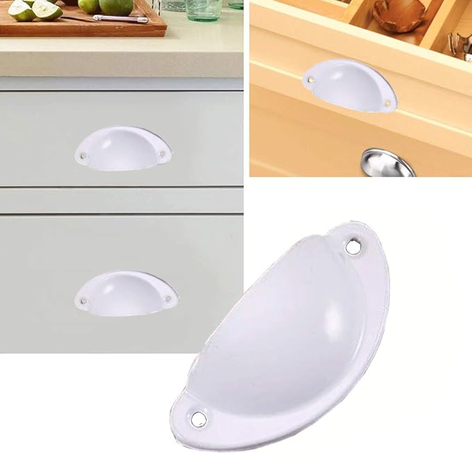 10 Poignee De Coquille Vintage Pour Tiroir Armoire Meuble Cuisine Fer Incurve Bouton De Porte De Placard Retro 8 2 Cm X 3 5 Cm Blanc Ls007 8