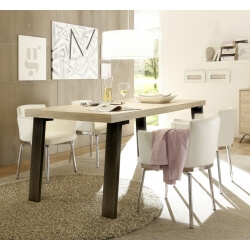 La table salle à manger bois ou métal est un élément primordial dans votre séjour puisque c'est l'élément central autour duquel vous allez accueillir ou recevoir vos amis, votre famille ou même manger au quotidien Si vous achetez une table design bois massif ou de cuisine en bois massif chez Meuble Passion, vous êtes certain d'avoir un meuble durable, bien fini, et de grande qualité. Table de salle à manger reposant sur 4 pieds inclinés en acier poudré noir, disposant d'un plateau en bois de chêne en finition huilé à l'aspect naturel d'une longueur de 2 cm Parfaite pour une décoration industrielle et actuelle, cette table à manger Downtown sera parfaite pour accueillir vos convives et pour vos repas en famille. Une atmosphère à la fois rustique et industrielle pour cette table à manger Party !.
