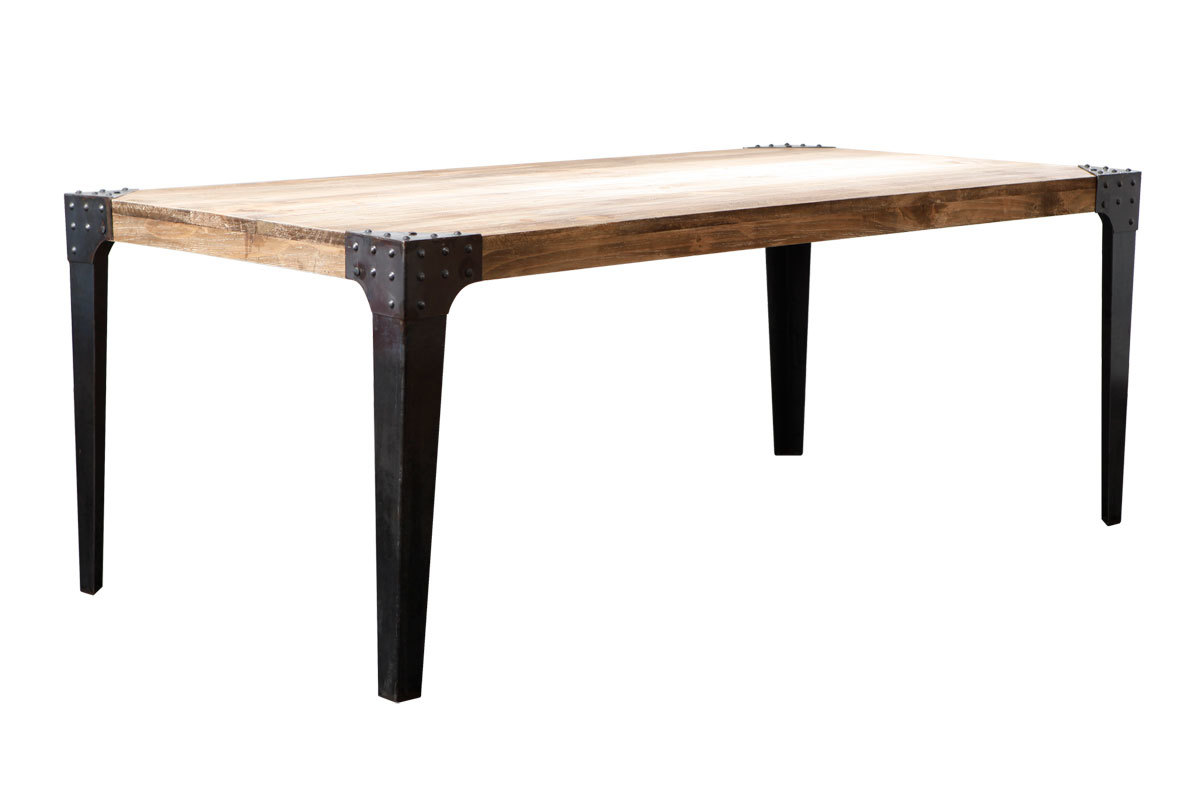 A noter la table à manger industrielle Nottingham est à monter soimême 02 Table style industriel avec rallonges avec rivets La table Factory en métal noir et bois de manguier est un juste dosage entre robustesse et esthétisme, avec ses pieds en acier riveté, associés à des lattes de manguier massif. Magnifique table à manger dont le style se situe entre le scandinave et l'industriel Idéal pour tout type de décoration !. TABLE A MANGER EN BOIS ET ACIER 0 CM RUSTICO KARE DESIGN Table à manger avec plateau épais en bois et verre Reposant sur 2 pieds en forme de U et en acier chromé Look incroyable pour cette table au style industrielleCompléter la décoration type Factory de votre Loft avec cette superbe table à manger bimatière D'un côté, un plateau avec un assemblage de bois recyclé laissé.