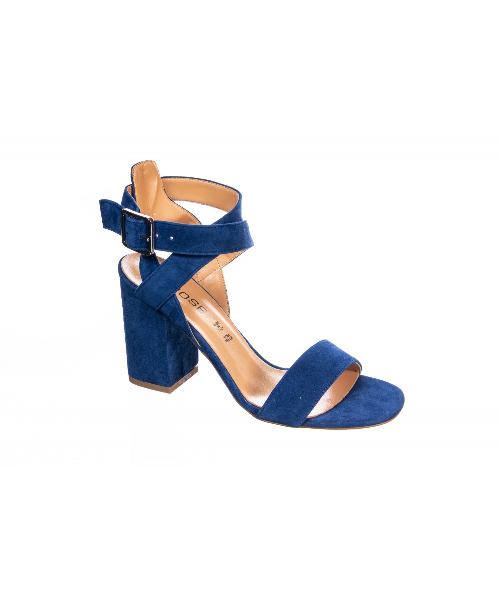 Sandales Suedine Bleu Marine A Talon Carre Femme Pas Cher La Modeuse