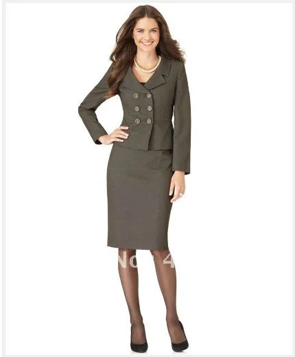 Femmes Vetements Gris Femmes Costume Tailleur Costume A Manches Longues Double Boutonnage Crante Col Portrait Veste Et Jupe Crayon 703 Aliexpress