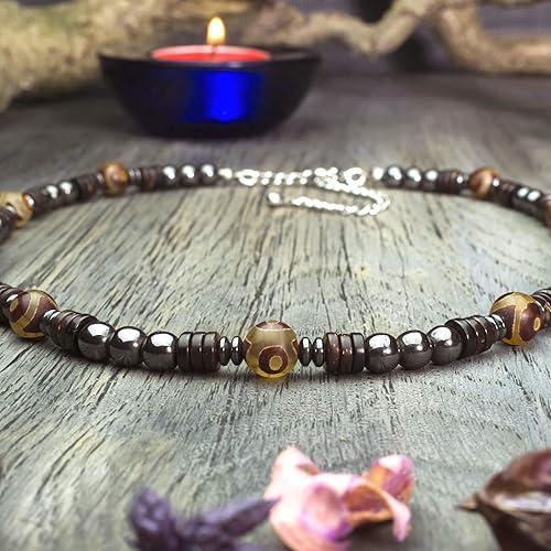 Collier Taille 45 50cm Style Tibetain Homme Femme Perles Pierres Naturelles Agate O8mm Hematite Bois Cocotier Coco Acier Inoxydable Collitiba18 Amazon Fr Handmade
