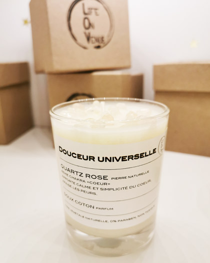 Bougie Bijou Acier Pierre Naturelle Quartz Rose Institut Athenais