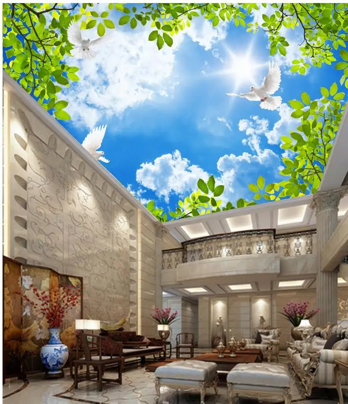 Papier Peint 3d Nature Ciel Bleu Pigeons Feuilles De Vigne Decoration Murale Pour Plafond Aliexpress