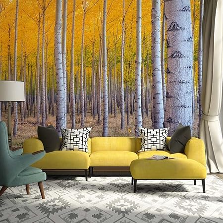 Lmopop Decor A La Maison Papier Peint Nature Bouleau Arbre Foret Paysage Photo Papier Peint Mural 3d Salon Auto Adhesif 400x280cm Amazon Fr Bricolage