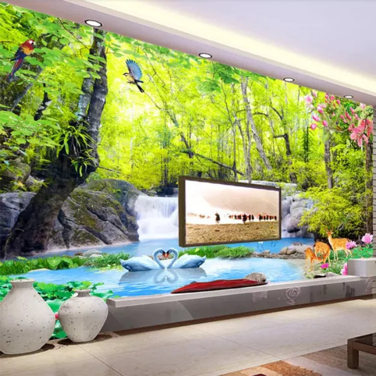 Papier Peint Personnalise Foret Cascades Paysage Naturel Television Fond Mur 3d Nature Fonds D Ecran Pour Salon Mural Aliexpress