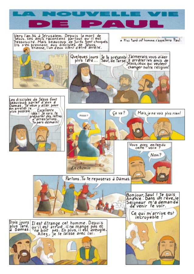 La conversion de Paul sur le chemin de Damas Louis Pernot, Eglise Protestante Unie de l'Etoile, 56, avenue de la GrandeArmée PARIS;. La catéchèse d'aujourd'hui sera consacrée à l'expérience que saint Paul fit sur le chemin de Damas et donc sur ce que l'on appelle communément sa conversion C'est précisément sur le chemin de Damas, au début des années 30 du i siècle, et après une période où il avait persécuté l'Eglise, qu'eut lieu le moment décisif de la vie. Saul de Tarse dirige la persécution des disciples de Jésus Sur la route de Damas, il lui arrive une chose incroyable Tout commence par une lumière aveuglante 7 e PARTIE De la résurrection de Jésus à l’emprisonnement de Paul Voir plus de contenu 108 e HISTOIRE Sur le chemin de Damas 109 e HISTOIRE.