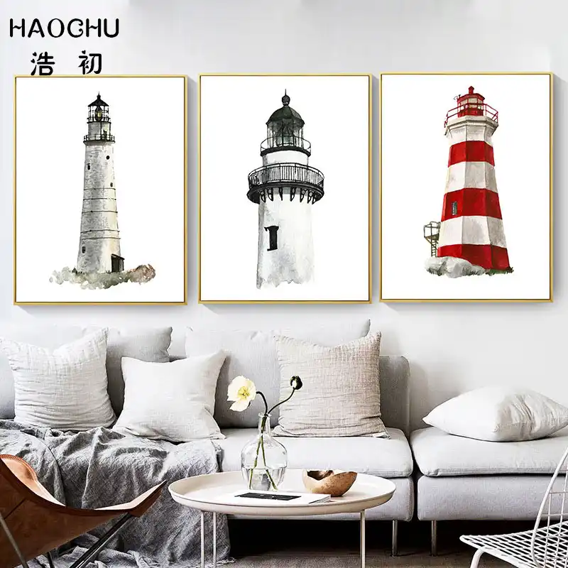 Style Scandinave Decoratif Rouge Bleu Phare Balises Affiches Peintures Sans Cadre Hd Mur Art Affiches Imprimer Pour La Decoration De La Chambre Aliexpress