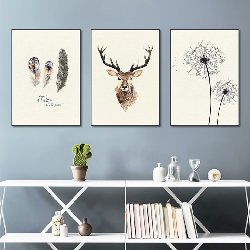 Style Scandinave Naturel Sans Cadre Elk Decoration Toile Peinture 3 Panneaux Sans Cadre Huile Photo Pour La Decoration De La Maison Mur Art Aliexpress